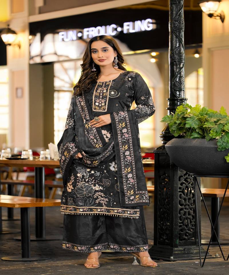 CHINON DOUX MODERNE IMPRIMÉ NUMÉRIQUE ET TRAVAIL MANUEL TOP BAS AVEC DUPATTA CASUAL WEAR PRIX DE GROS VÊTEMENT ETHNIQUE