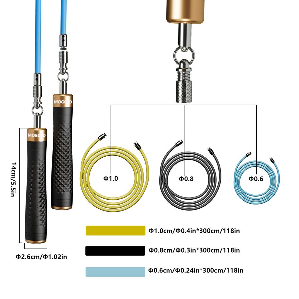 MOGOLD Corde à sauter ajustable en fil d'acier 1/2lb 1/4lb avec câble en caoutchouc pour la perte de poids