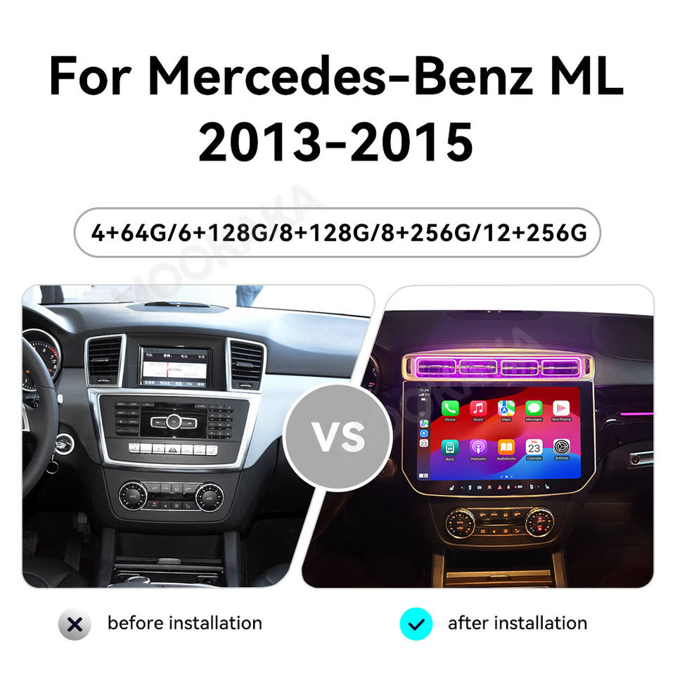 MOOKAKA 13,3 pouces Android pour Mercedes-Benz ML 2013-2015, ancien vers nouveau, entièrement compatible avec éclairage d'ambiance, GPS, CarPlay sans fil, autoradio