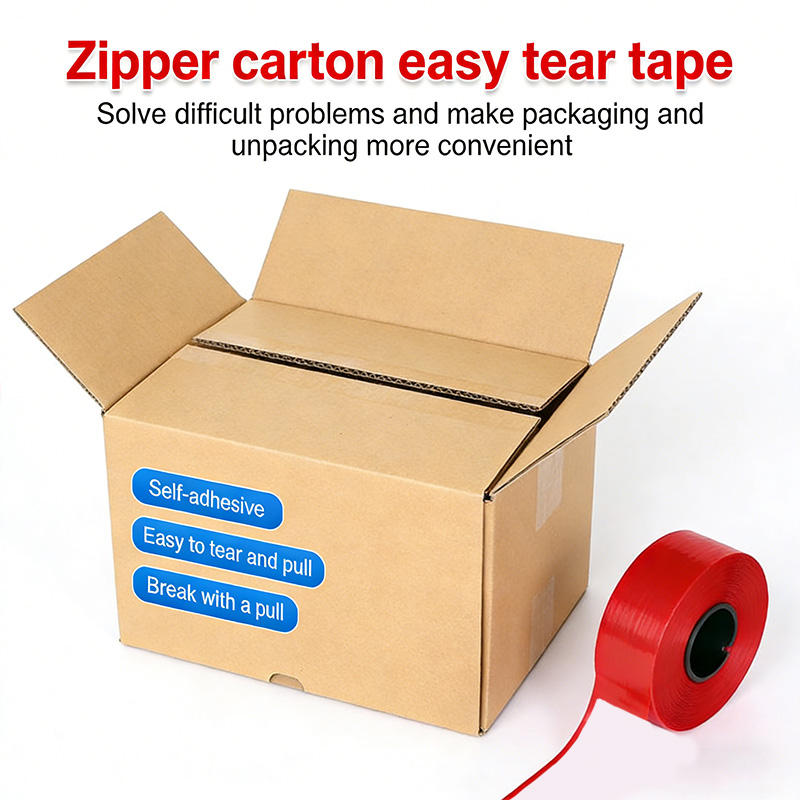 Ruban adhésif MOPP bleu à ouverture facile, adhésif permanent simple face pour carton, sac, boîte, bande de déchirement résistante à la chaleur avec ruban