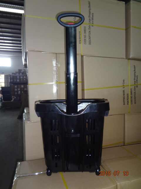 MOQ 20 PCS 4 Roues 40L Panier à roulettes avec poignée, Panier à roulettes en plastique pour supermarché avec 4 roues