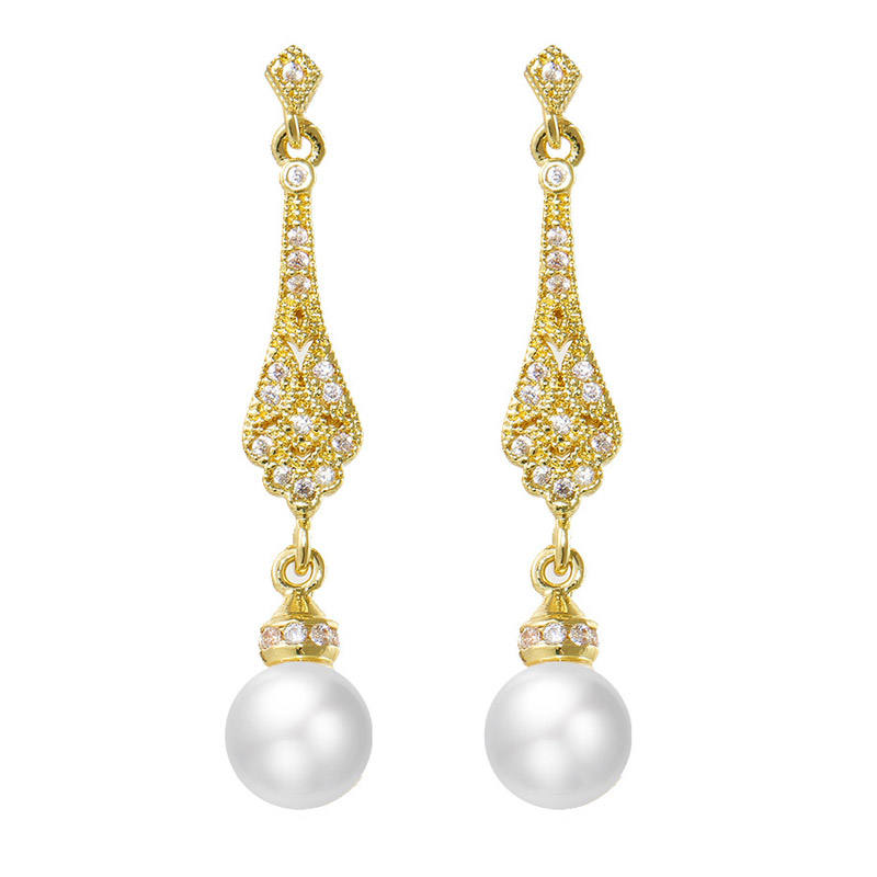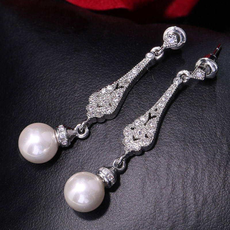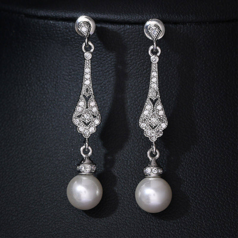 MOQ 2pcs Only Wholesale Women Jewelry Cz Luxury Silver Brides Pearl Wedding Earrings