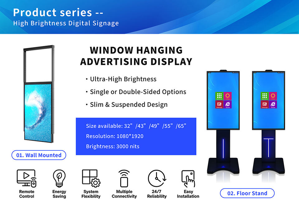 Écran LCD numérique double face haute luminosité pour vitrine de magasin, avec Wi-Fi et Bluetooth, amovible, MOQ 1 pièce