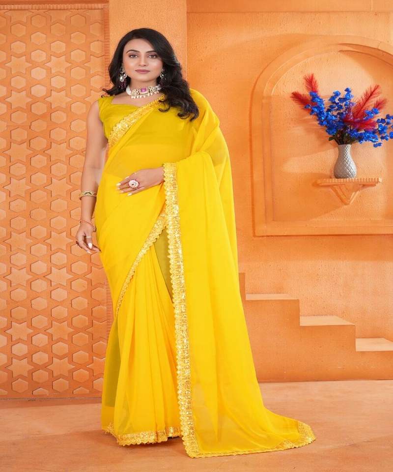 MORDEN RED GEORGETTE EMBROIDERY SEQUENCE WORK LACE SAREE WITH UNSTITCHED BLOUSE DAILY WEAR WHOLESALE PRICE ETHNIC GARMENT