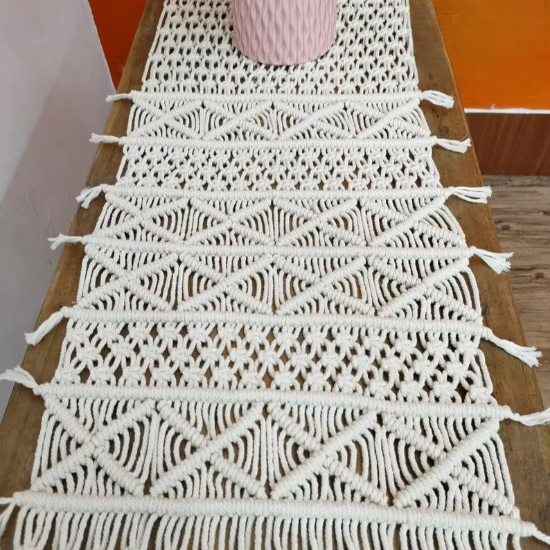 Chemin de table macramé Boho coton naturel tissé pour décoration bohème maison et hôtel pour salle à manger cuisine espace de table