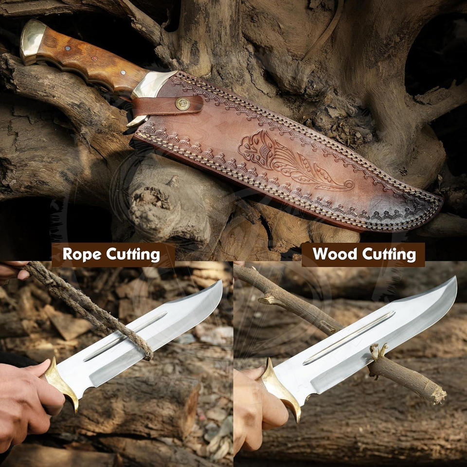 Couteau de chasse MORTAL BLADES, lame fixe personnalisable, acier inoxydable, manche en bois de rose, couteau de survie en plein air, couteau de camping avec étui
