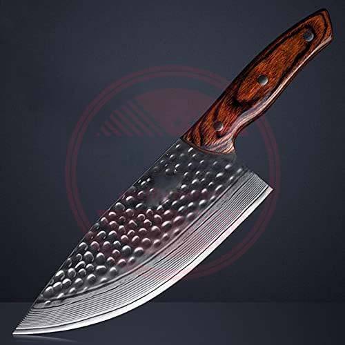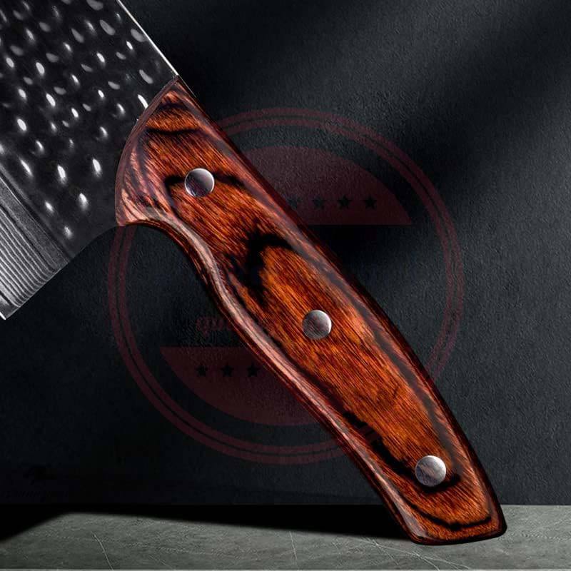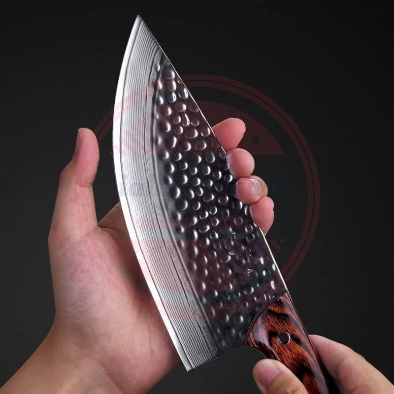 Couteau de Chef Professionnel en Acier Damas Fait Main MORTAL SAGA, Manche en Bois, Outil Multifonctionnel pour Camping en Plein Air, Garantie 3 Ans