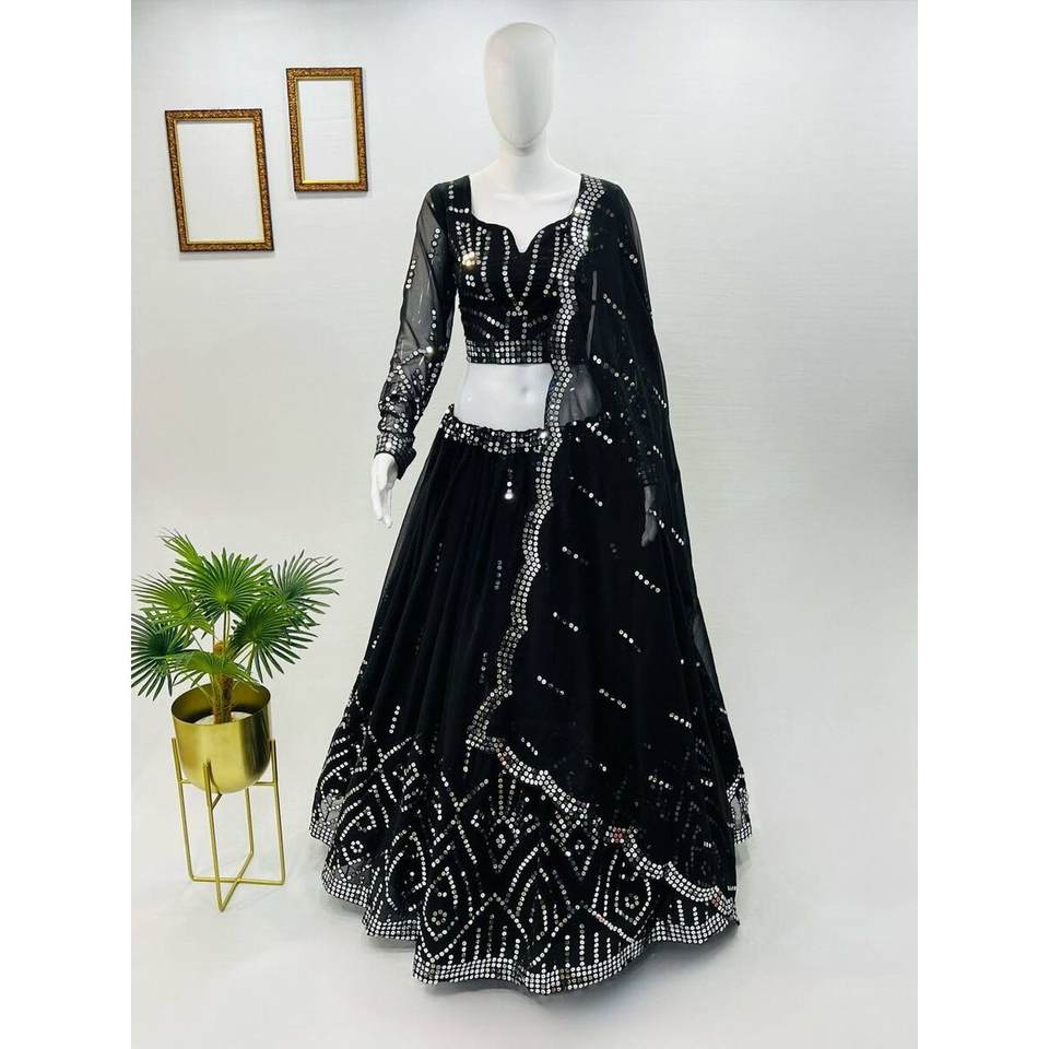 MOST PICKED GEORGETTE EMBROIDERY SEQUENCE WORK LEHENGA CHOLI WITH DUPATTA BLACK