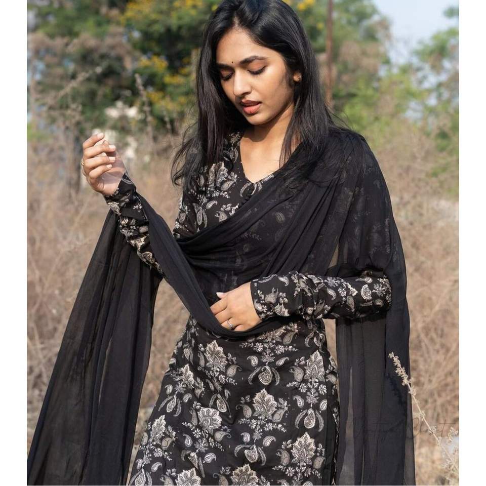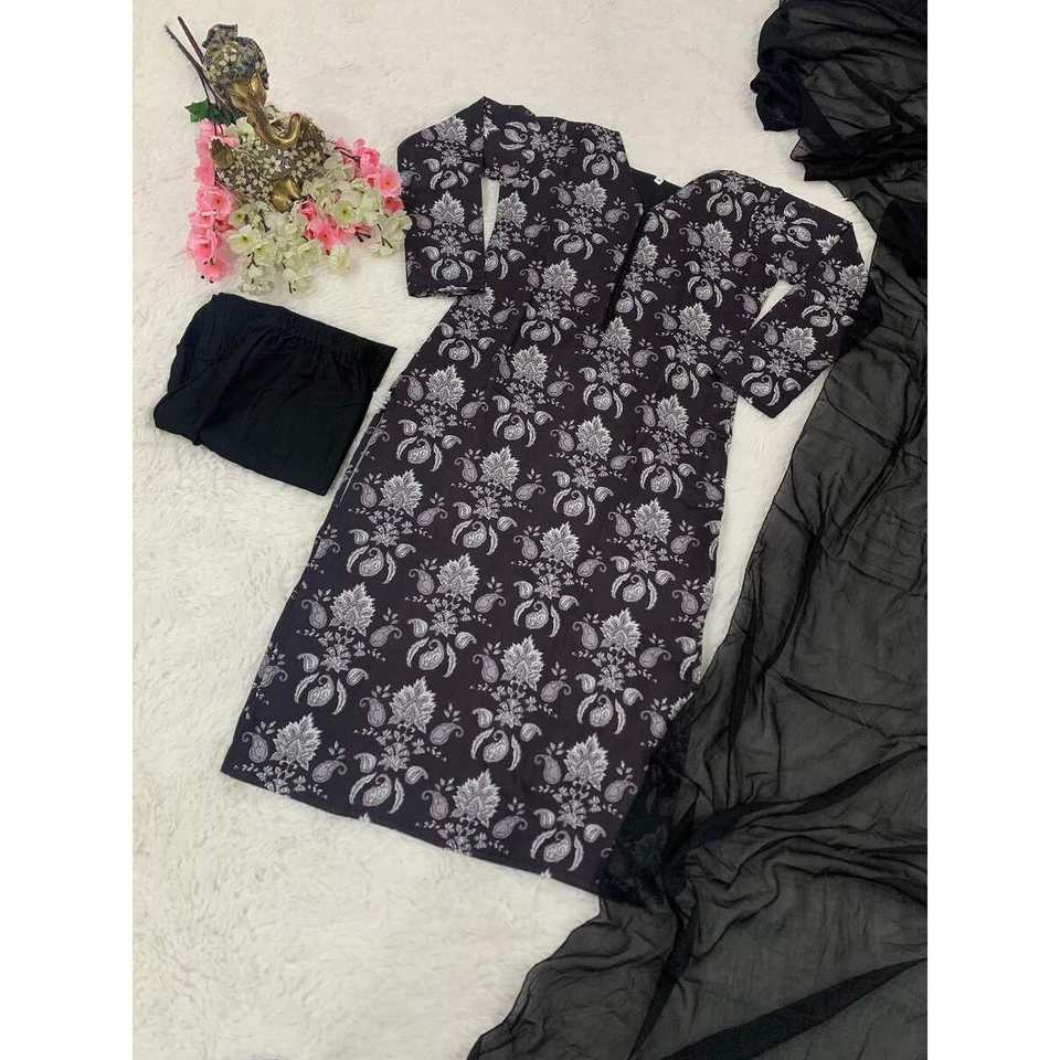 MOST PICKED MUSLIN PORINTED TOP BOTTOM WITH DUPATTA BLACK