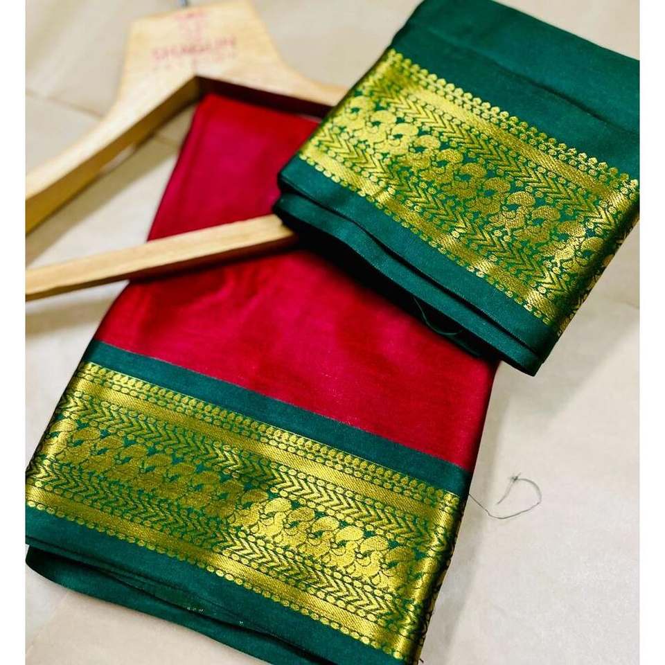 SAREE DE TRAVAIL À FRONTIÈRE ZARI SOIE DOUCE LA PLUS CHOISIE AVEC CHEMISIER NON COUDU ROUGE