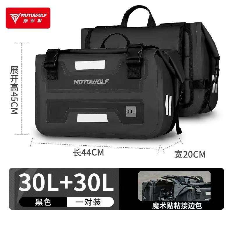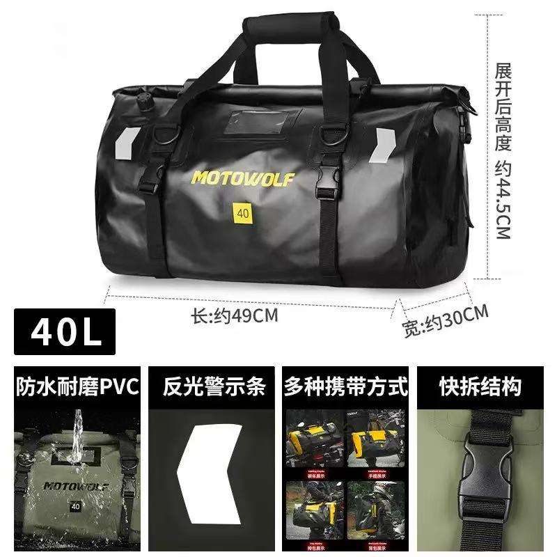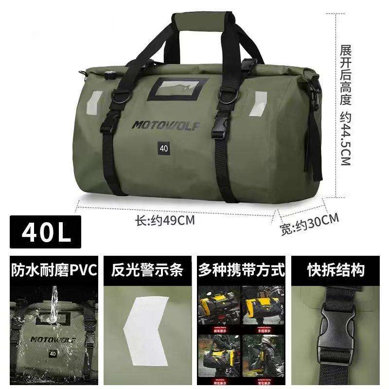 MOTOWOLF Unisex Fashion Large Capacity PVC Outdoor Motorcycle Saddle Bag Zipper Waterproof 40L Storage Solution Long-Distance