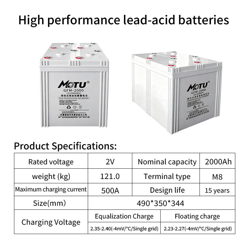 MOTU GFM2000 GFM300Ah GFM200Ah Batteries à décharge profonde pour stockage d'énergie solaire, UPS, centres de données, communications, sans entretien