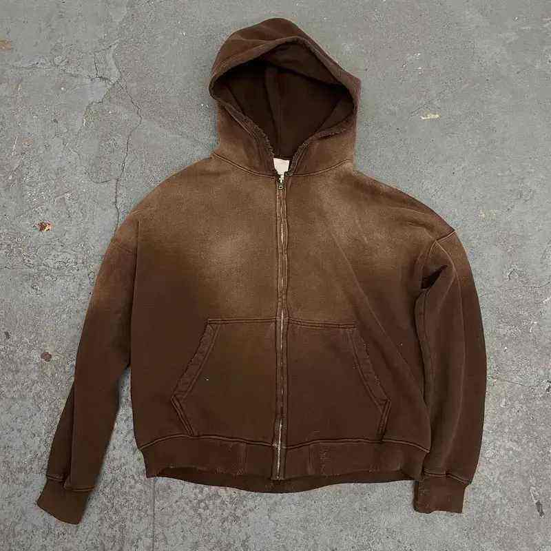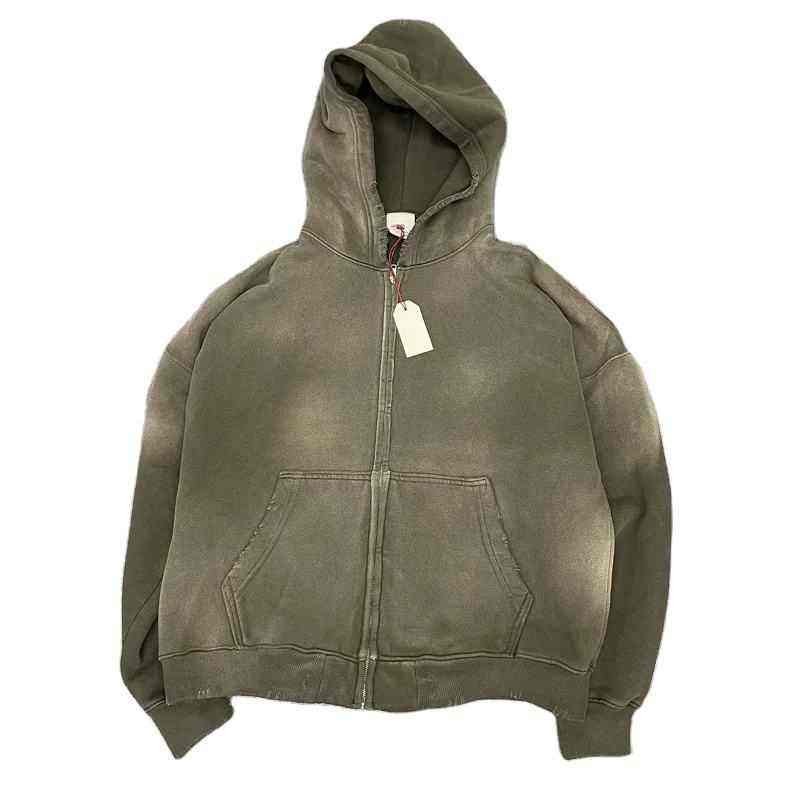 Sweat à capuche MOVATEXTILE de qualité supérieure, délavé à l'acide, effet délavé au soleil, fermeture éclair réfléchissante, style zippé, sweat à capuche tendance pour homme