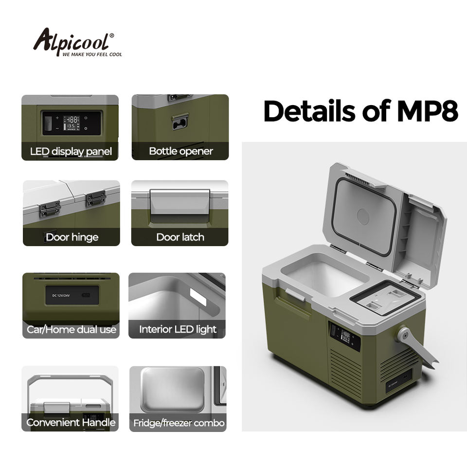 Réfrigérateur-congélateur de voiture MP8 Alpicool à compresseur, glacière électrique portable, mini-réfrigérateur pour voiture, AC 100-240V, DC 12V 24V, camping