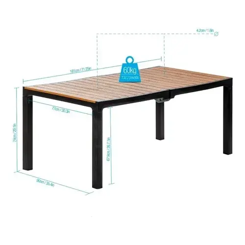 Salle à manger d'extérieur en bois, 6 places, marque Mq, structure tabac