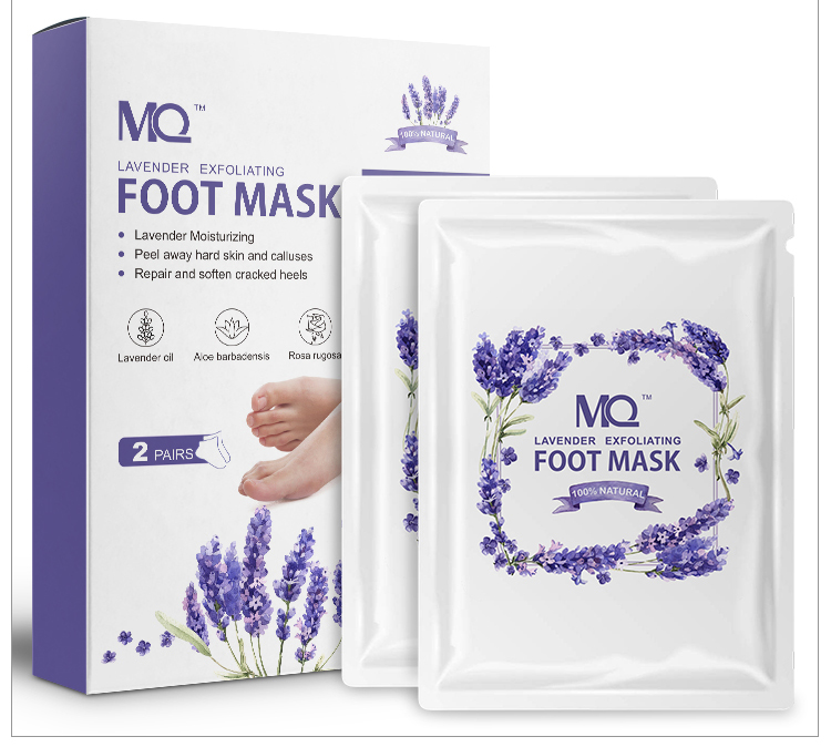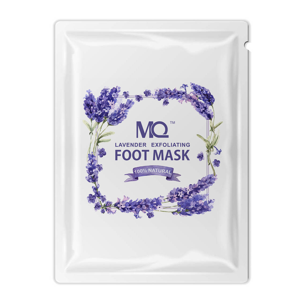 Masque exfoliant pour les pieds à la lavande MQ Lavender, hydratant, qui élimine les peaux mortes et les callosités, répare et adoucit les talons gercés.