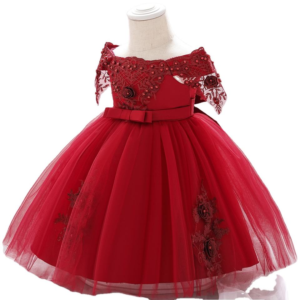 MQATZ Robe à fleurs brodées de style européen Robe de fête et de mariage formelle pour enfants Robe de bal princesse pour enfants
