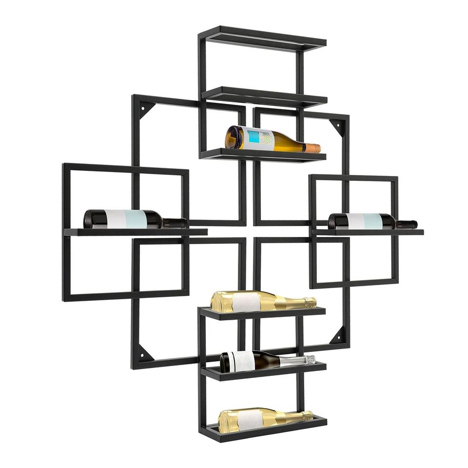 MR HANDICRAFT Minimalist Square Frame Iron Wine Bottle Holder 3L Striped Kitchen Living Room Wall Artistic Multi-Tier Wall Wine