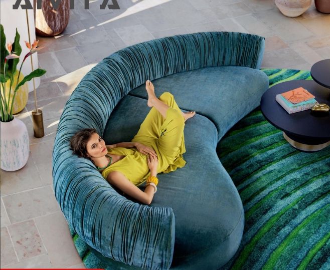 Canapé incurvé plissé en tissu de velours créatif MR Luxury Design Beauty Club Hall d'exposition Salon Canapé de forme spéciale
