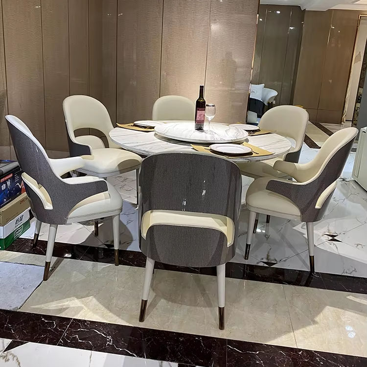 MR Luxury Dining Table Set Italian Dining Room Furniture Round Oval Natural Marble Top Dining Table Set Six Chairs for Home