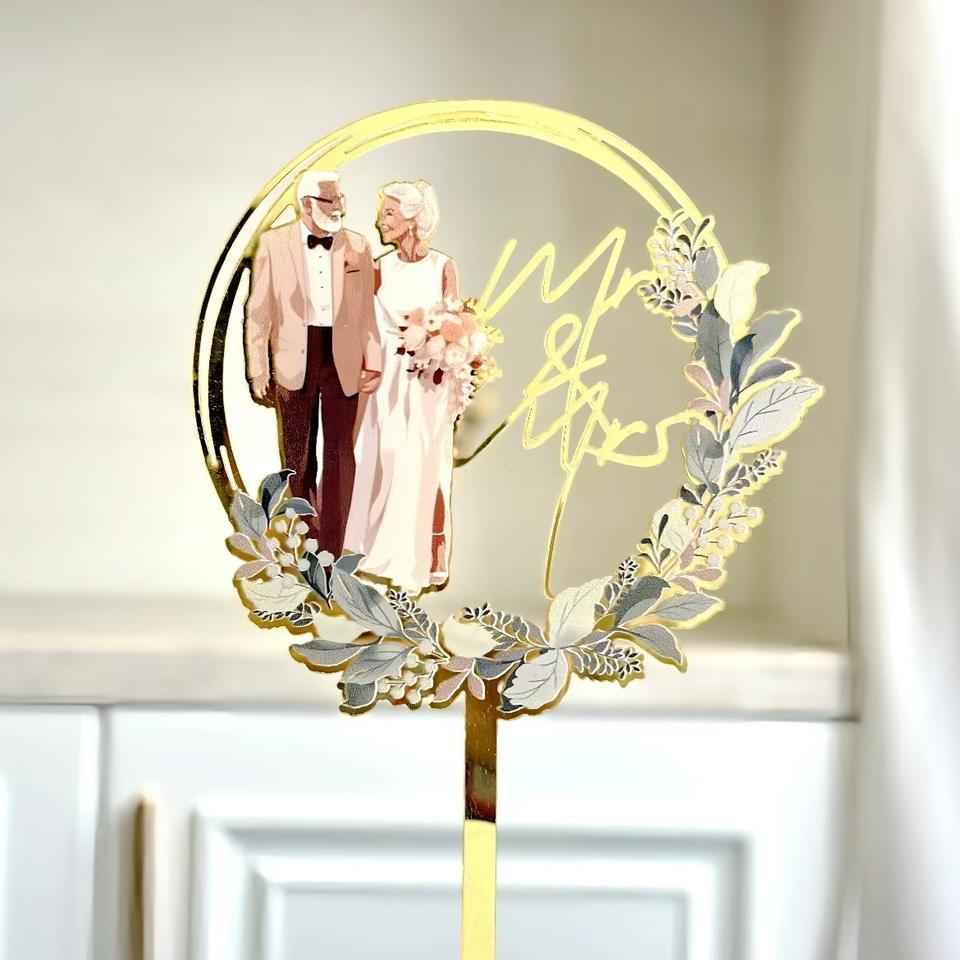 Décorations de gâteau en acrylique imprimées en couleur MR MRS, fournitures de fête, topper de gâteau pour mariage, fiançailles, fête de mariage