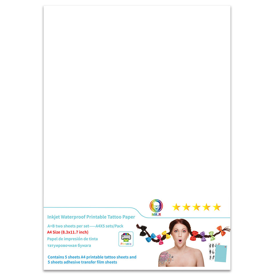 Papier de transfert d'eau imprimable au laser à jet d'encre M R.R pour tatouage corporel temporaire A4 avec 5 ensembles par paquet (A + B par ensemble)