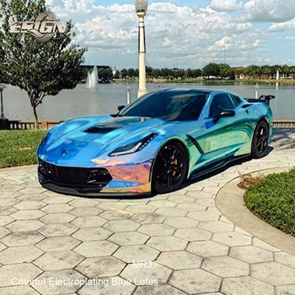 MR37 Film d'emballage de voiture de haute qualité à changement de couleur auto-cicatrisant, anti-rayures, protection contre les UV, protection contre la peinture, galvanoplastie PVC, bleu