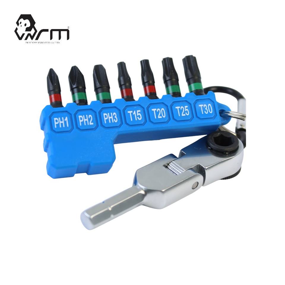 MRM – Lot de 8 embouts PH1-T30 avec porte-clés pour clé à cliquet flexible, finition phosphate de manganèse noir, personnalisable ODM, fabriqué à Taïwan, facile à transporter, bois, 13 cm