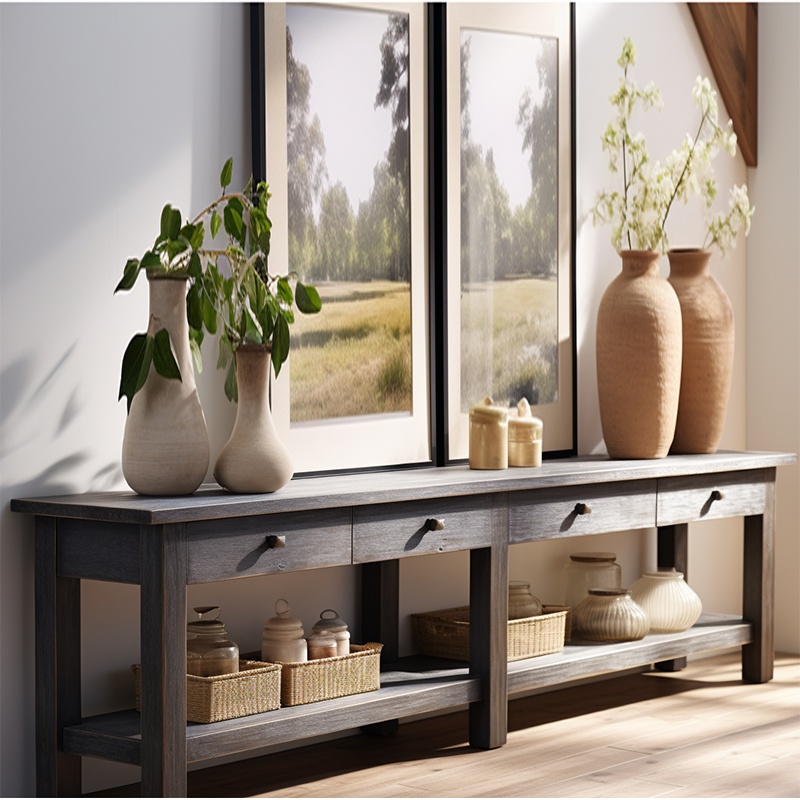 MRS WOODS Table d'entrée au design rustique élégant Tables console de coffre en bois massif antique étroit Couloir de salon