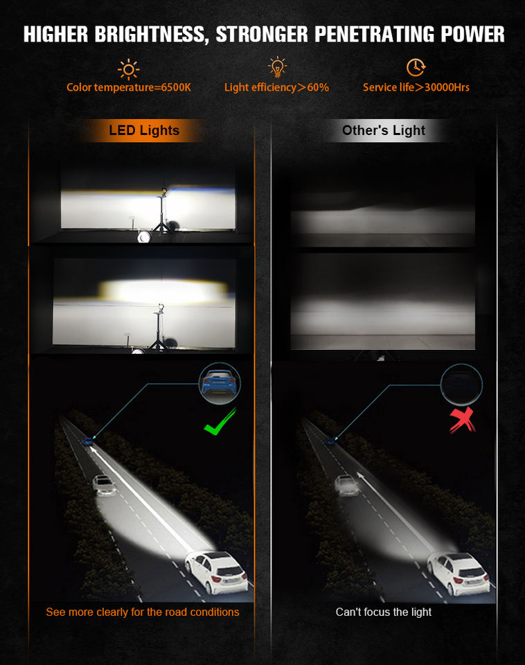 Lumen:2600lm @ Haute Faisceau, 2600lm @ Faible Faisceau