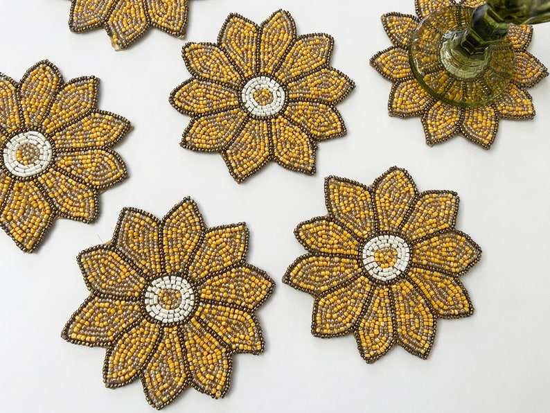 Sous-verres en perles de verre faits à la main MS HANDICRAFT - Cadeaux religieux classiques avec support en polyester (4x4 pouces)