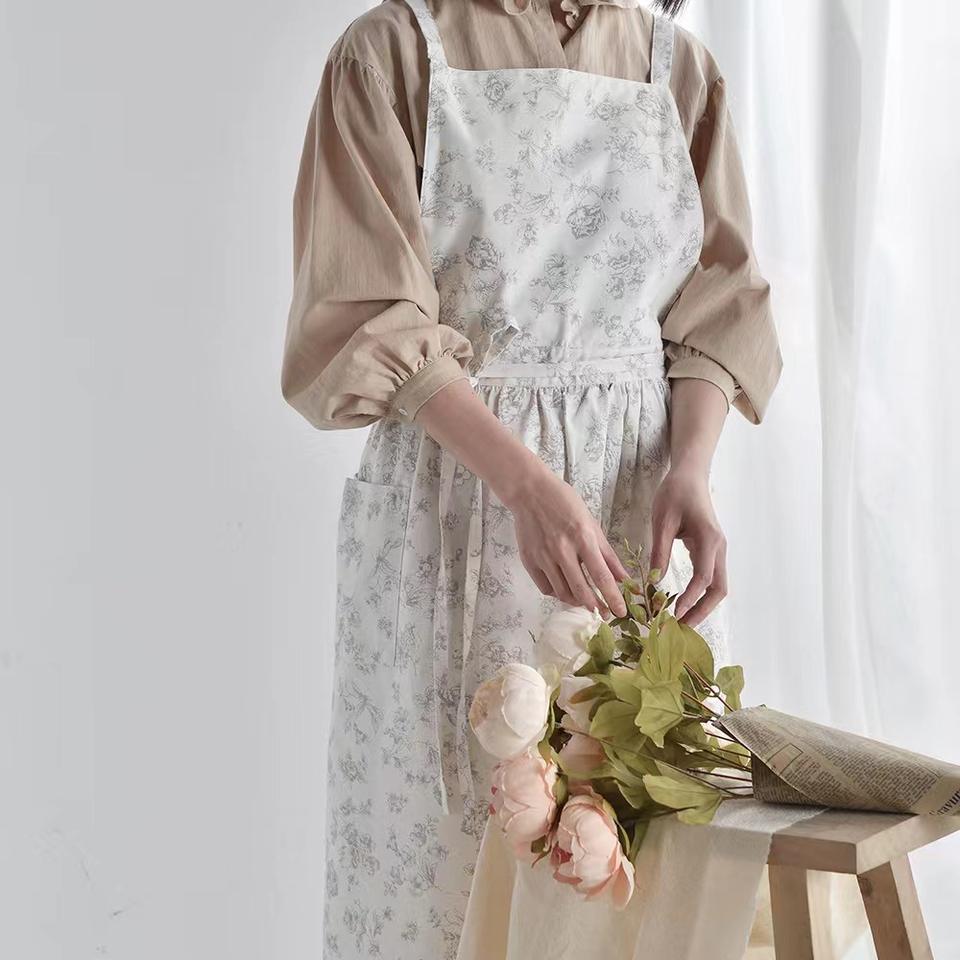 Tablier de cuisine en coton et lin floral imperméable en coton pur, vente en gros d'usine MS7, commerce extérieur transfrontalier