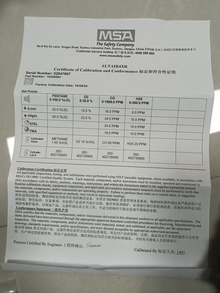 Détecteur multigaz portable MSA 4XR Altair pour analyseur de compteur de gaz de stock d'analyse LEL O2 CO H2S
