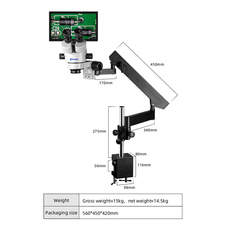 Microscope stéréo à culbuteur MSD205-B-11.6YT pour la soudure électronique, assemblage de précision d'inspection industrielle (zoom 0.7-4.5X)