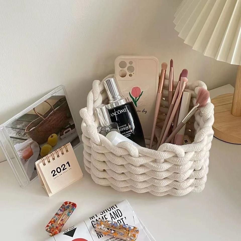 MSH Panier d'articles divers de table en corde de coton artisanal pour collation cosmétique