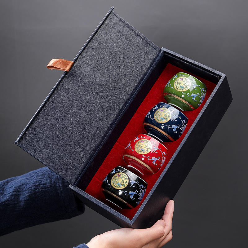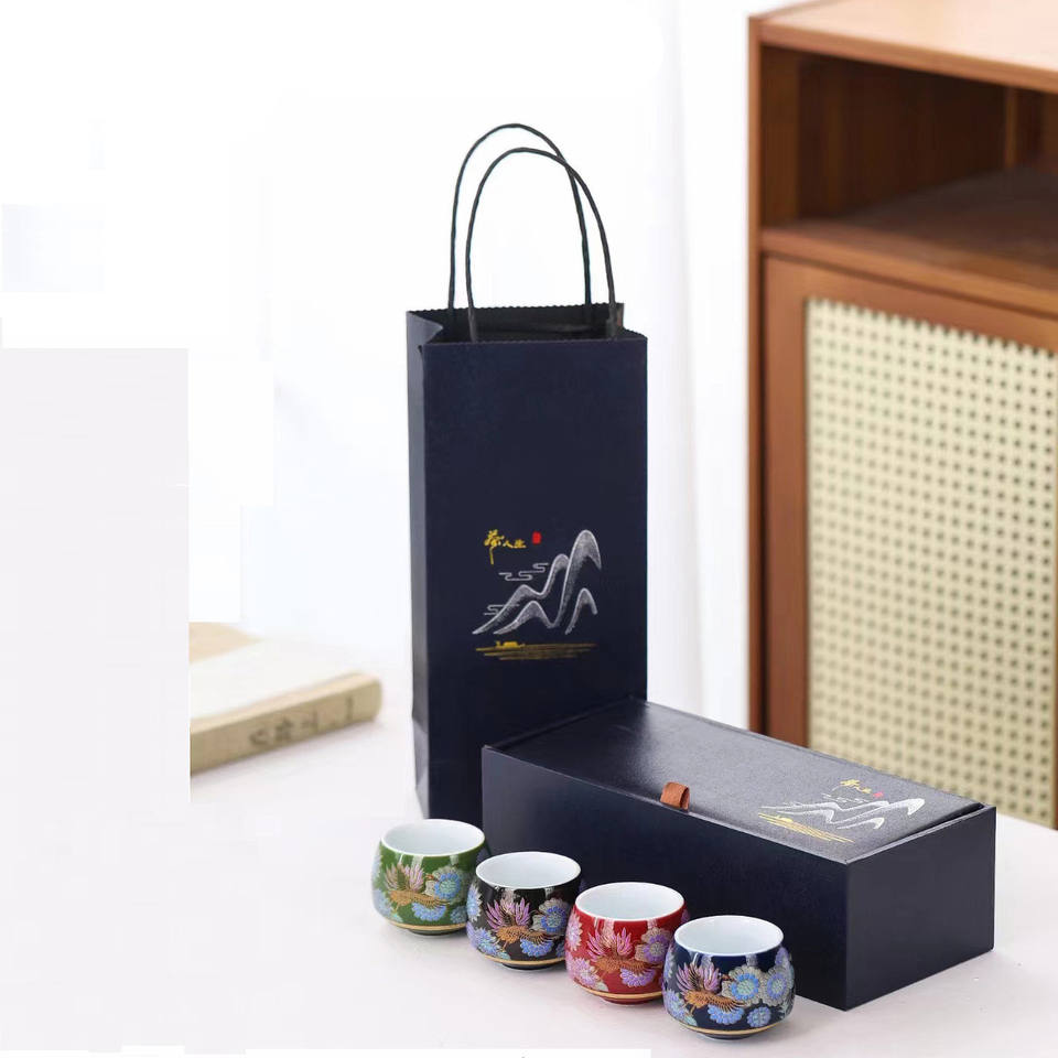 Service à thé en céramique de style japonais minimaliste MSH, 4 tasses, émail, qualité alimentaire, pour cadeaux d'affaires