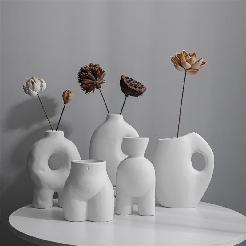 MSH Style nordique moderne blanc Vases en céramique maison hôtel décoration corps humain fesse Vases en céramique