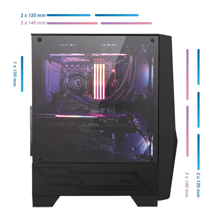 Boîtier pour ordinateur portable MSI MAG FORGE 100R, moyenne tour de pc avec ARGB 120mm, ventilateur, compatible avec ATX, micro-atx/Mini ITX