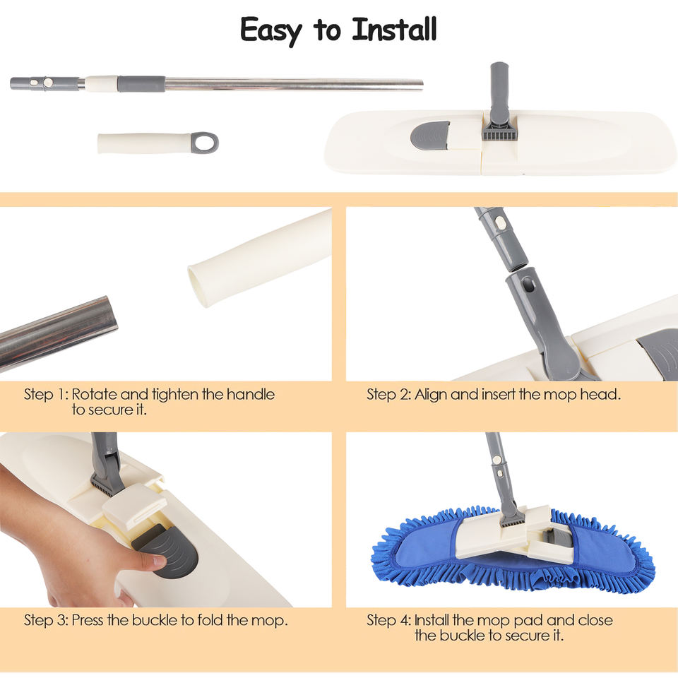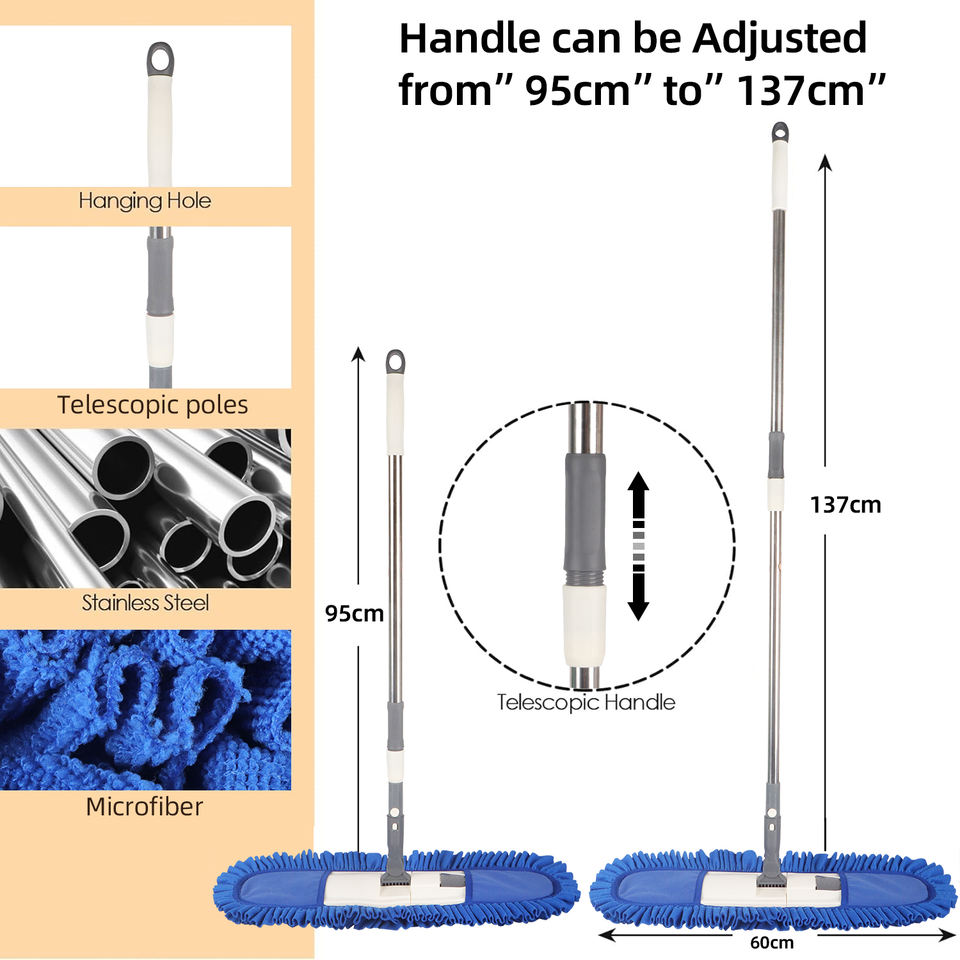 Balai à poussière plat en microfibre commercial très efficace MSJ avec poteau en acier pour nettoyer les grands espaces