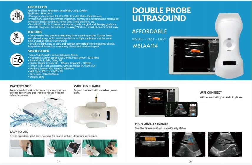 MSLAA114 Sonde d'échographie Doppler couleur sans fil à réseau phasé cardiaque/linéaire et convexe 3 en 1 pour IOS/Android