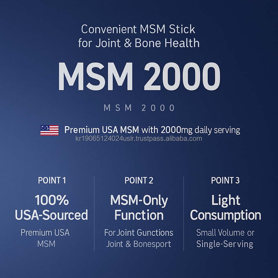 Complément en poudre MSM 2000mg en stick pour adultes, soutien articulaire, densité osseuse améliorée, emballage individuel OEM, 90 sticks, complément unisexe
