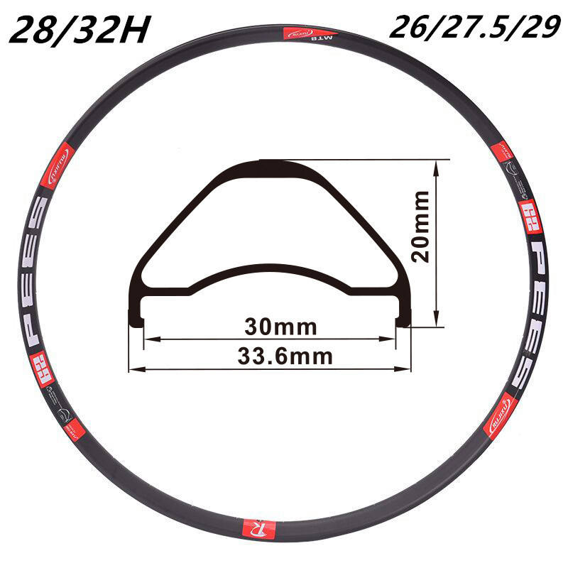 Jante de vélo VTT haute résistance 26/27,5/29 pouces en alliage d'aluminium, frein à disque double, 28/32 trous