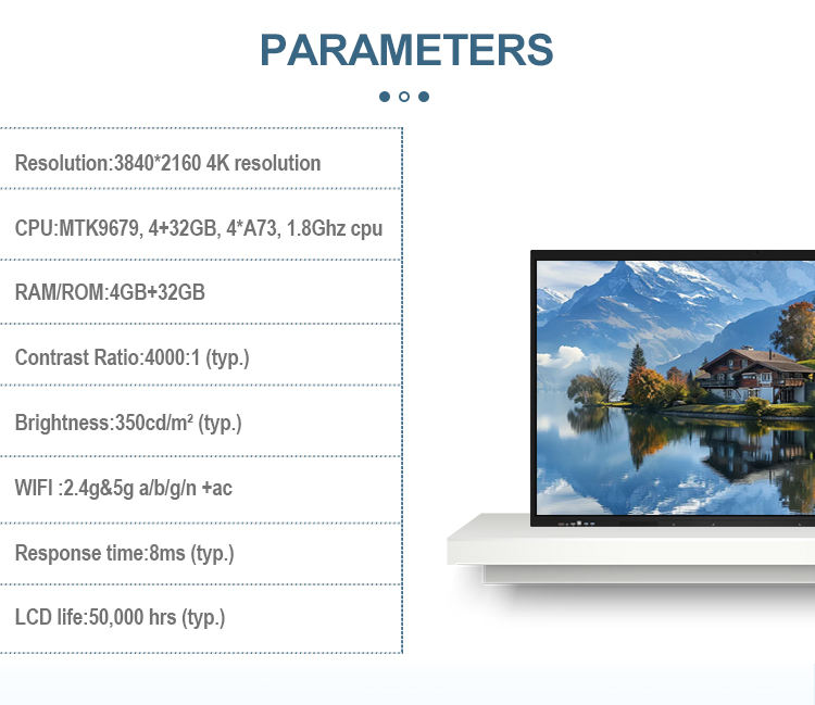 Tableau blanc numérique intelligent MTK9679 avec écran de 65 pouces, prix du tableau blanc numérique, caméra 48 mégapixels