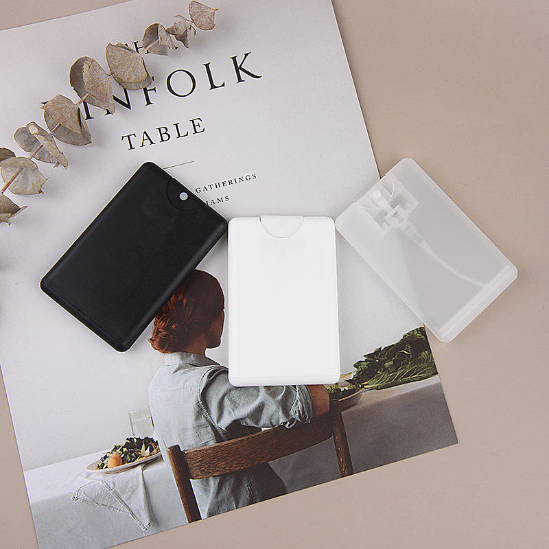 MUB Prix d'usine 20ml Spray plat en plastique avec carte de crédit Emballage pour soins de la peau Bouteilles bon marché pour parfums