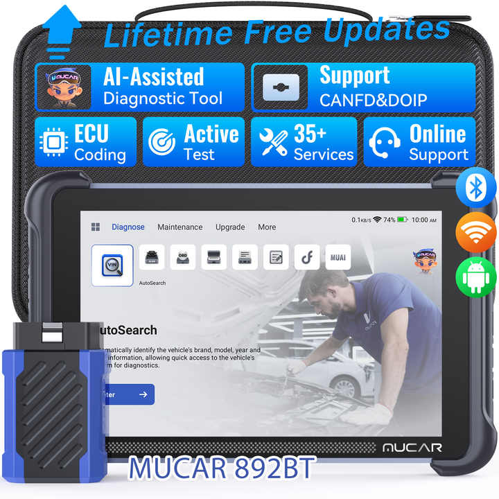 MUCAR 892BT Scanner de diagnostic automobile intelligent IA avec fonction de réinitialisation bidirectionnelle complète professionnelle pour 35 systèmes