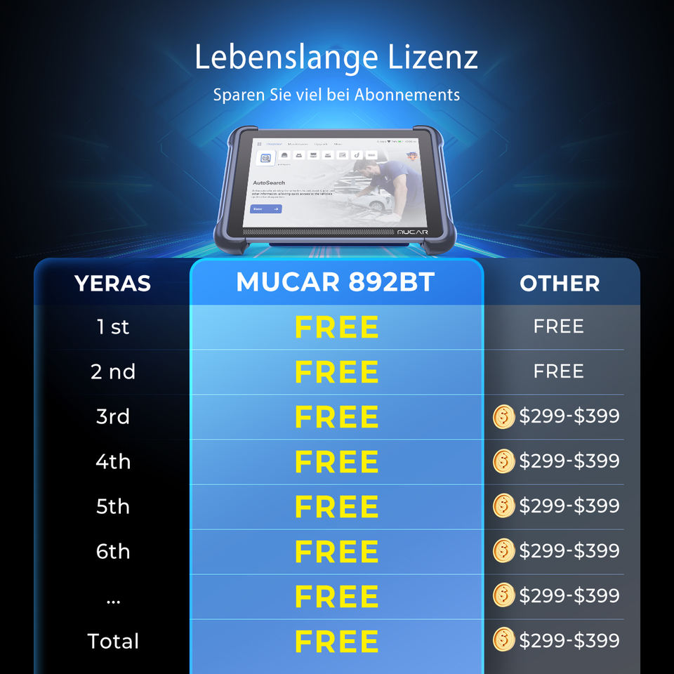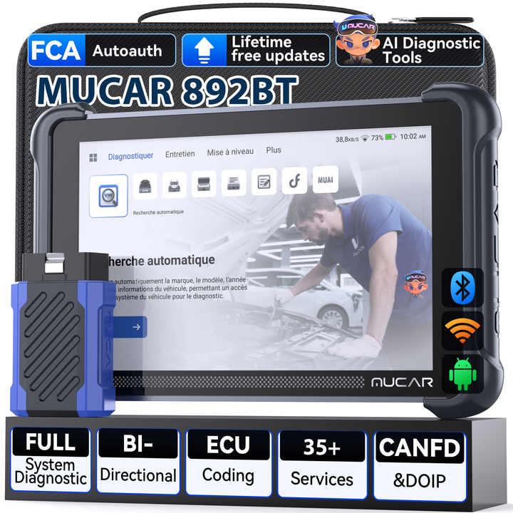 MUCAR 892BT Scanner de diagnostic automobile professionnel CANFD, système complet, mise à jour gratuite à vie, ROM 64 Go, écran 8 pouces, outils de diagnostic IA