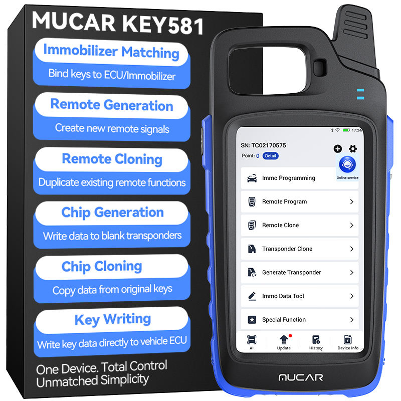 Programmateur de clés de voiture MUCAR KEY581 avec outil de diagnostic d'immobilisateur, scanner OBD2 pour toutes les clés perdues, 9+ fonctions de service