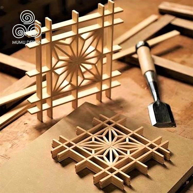 Paravent MUMU en bois massif Hinoki 3D, style français de luxe, multicouche, décoratif, cloison Kumiko de luxe