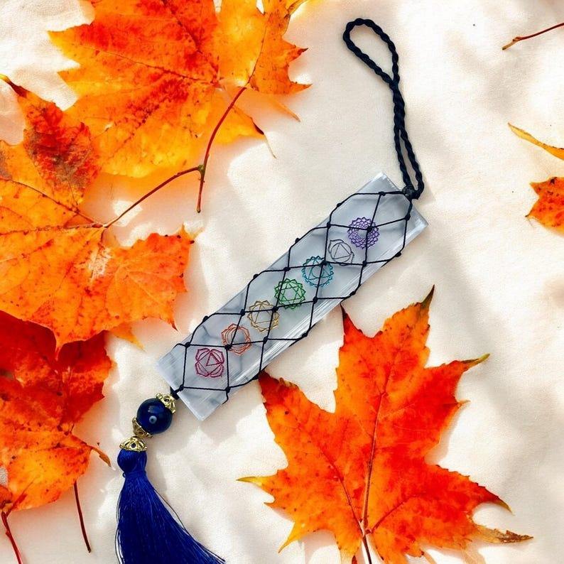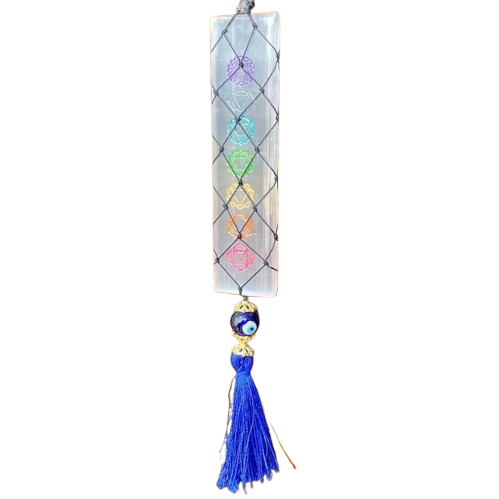 MUNTAHA AGATE Selenite Hanger with Evil Eye Bead Charm Eco-Friendly 15-20cm Size Protective Energy Negative Energy Shield Decor