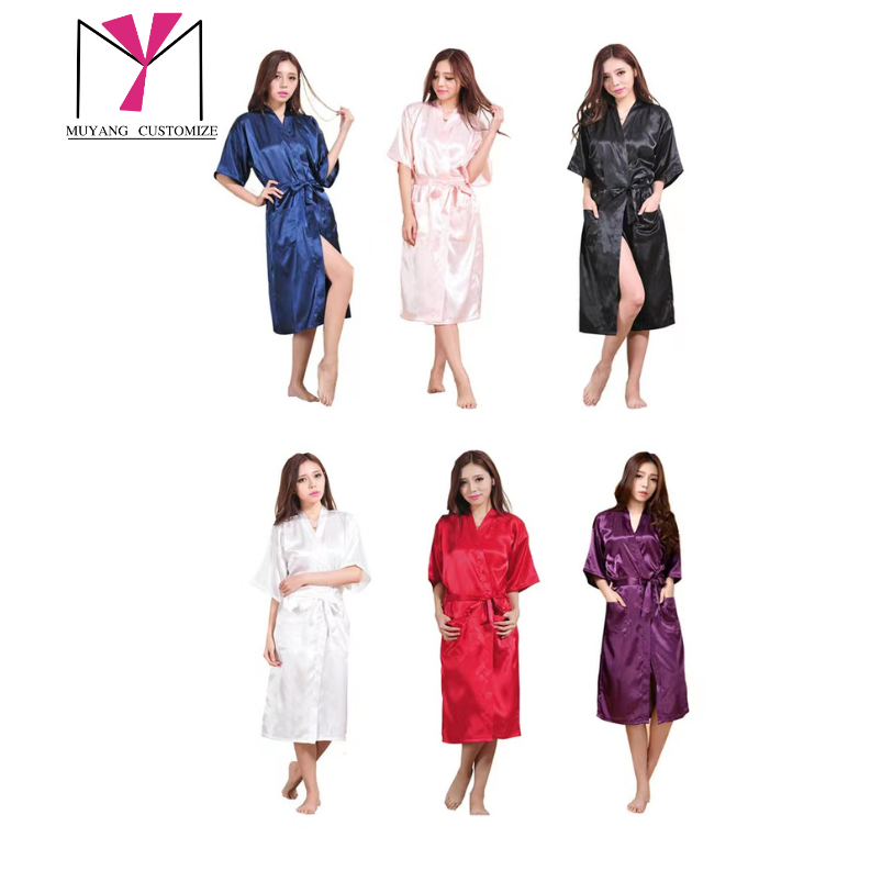 Robe longue personnalisable MUYANG à manches courtes en tissu satiné, vêtements de nuit d'été pour la maison et l'hôtel